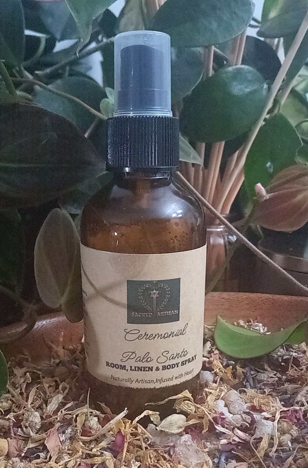 Elegantly packaged in a 4oz amber glass bottle, CEREMONIAL PALO SANTO combines sophistication with practicality. Its compact design is ideal for travel, allowing you to enjoy its versatile fragrance wherever you go. Crafted with care, this all-in-one spray features a soothing formula enriched with witch hazel and glycerine, making it suitable for use as a room freshener, linen spray, or personal body mist. Elevate your daily routine and create a calming atmosphere with this multi-functional fragrance that seamlessly fits into your lifestyle.
