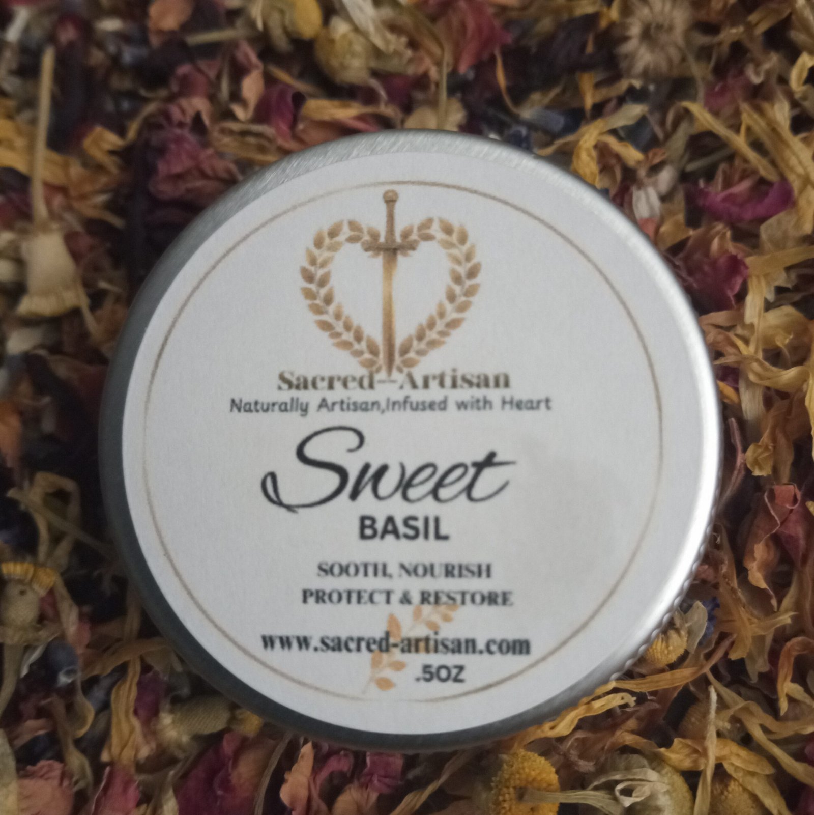 Ingredients: Basil essential oil, shea butter, tallow, beeswax, cocoa butter, kokum butter, coconut oil, jojoba oil,abysinian oil, tomatoseed oil, castor oil,moringa oil,rosehip oil, blackcurrant seed oil, vatamin e oil, wheat germ oil, chamomile extract,calendula extract,prunella extract, lavender extract basil essential oil