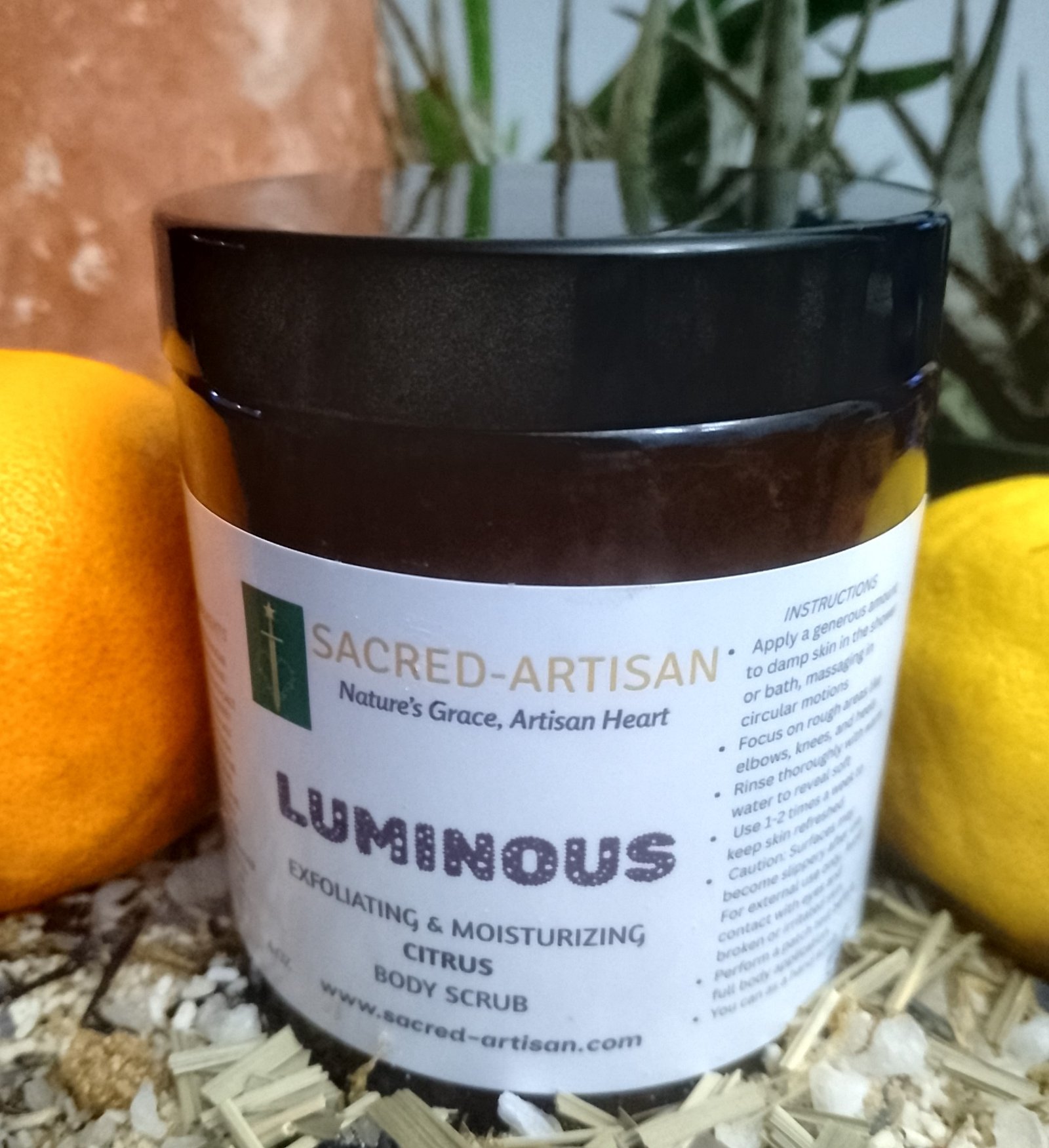 Experience the ultimate in self-care with our Luminous Body Scrub Jar, designed to exfoliate, moisturize, and brighten your skin while enveloping you in an uplifting scent. This luxurious scrub combines the natural goodness of coconut sugar, brown sugar, and Himalayan salt to gently buff away dead skin cells, revealing a radiant glow. Infused with nourishing ingredients like Manuka honey, grapeseed oil, castor oil, and sunflower oil, it hydrates deeply, leaving your skin soft and supple. The invigorating blend of citrus peel, orange essential oil, and lemon essential oil not only refreshes your senses but also enhances your skin’s vitality. Perfect for use on hands, feet, or the entire body, this versatile scrub is your go-to solution for a spa-like experience at home. Treat yourself to the luminous skin you deserve!