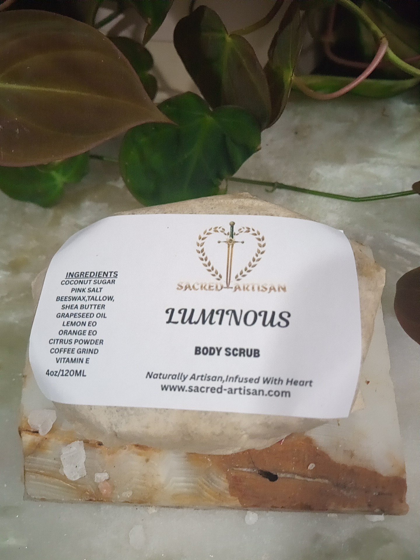 Experience the rejuvenating power of Luminous Body Scrub Bar, meticulously crafted to exfoliate, brighten, and invigorate your skin. This luxurious scrub bar combines the natural goodness of brown sugar and coconut sugar to gently slough away dead skin cells, revealing a smoother, more radiant complexion. Infused with a blend of pink salt, Epsom salt, and sea salt, it not only detoxifies but also revitalizes your skin, leaving it feeling refreshed and energized. The addition of coffee and oats provides a unique texture that enhances the exfoliation process while nourishing your skin, making it an essential part of your daily skincare routine.