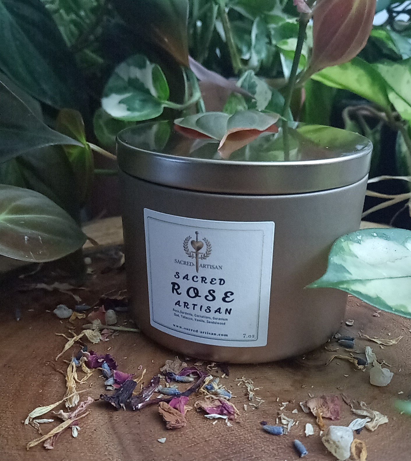 Elevate your space with our luxury 8oz candle, a perfect blend of rose bouquet, jasmine, gardenia, and lily, enriched with earthy hints of tobacco, vanilla, and sandalwood. This exquisite floral aroma creates a romantic ambiance, making it ideal for intimate evenings or relaxation. Crafted from premium beeswax and essential oils, it ensures a clean, long-lasting burn while the elegant gold tin adds a touch of sophistication and portability.