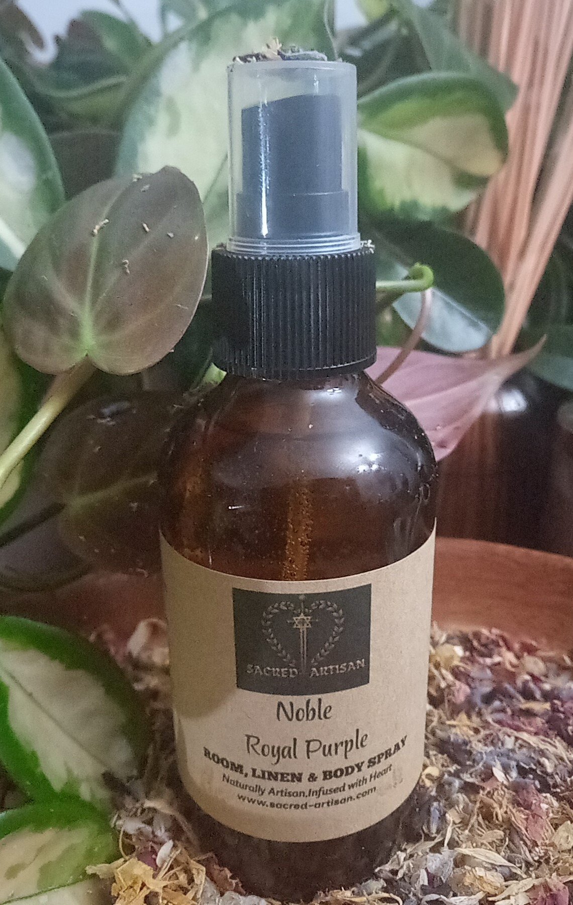 Immerse yourself in a symphony of aromas featuring lilac, lavender, and purple thyme, complemented by warm cedarwood, sensual jasmine, and a hint of vanilla. Crafted with natural ingredients like glycerine and witch hazel, Sacred Royal Purple ensures a gentle touch on your skin and fabrics while delivering a long-lasting, refined fragrance. Indulge in this opulent experience and transform your space into a sanctuary of elegance.