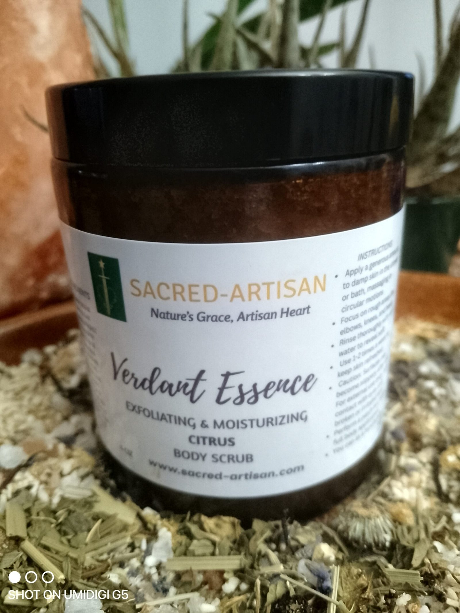 Indulge in the luxurious experience of Verdant Essence Body Scrub, designed to transform your skincare routine into a rejuvenating at-home spa experience. This exquisite blend features natural exfoliants like coconut sugar and brown sugar, combined with Himalayan salt to gently buff away dead skin cells, revealing a smoother, more radiant complexion. Infused with the healing properties of Manuka honey and a unique herbal blend, this scrub not only exfoliates but also moisturizes and soothes, leaving your skin feeling refreshed and revitalized.
