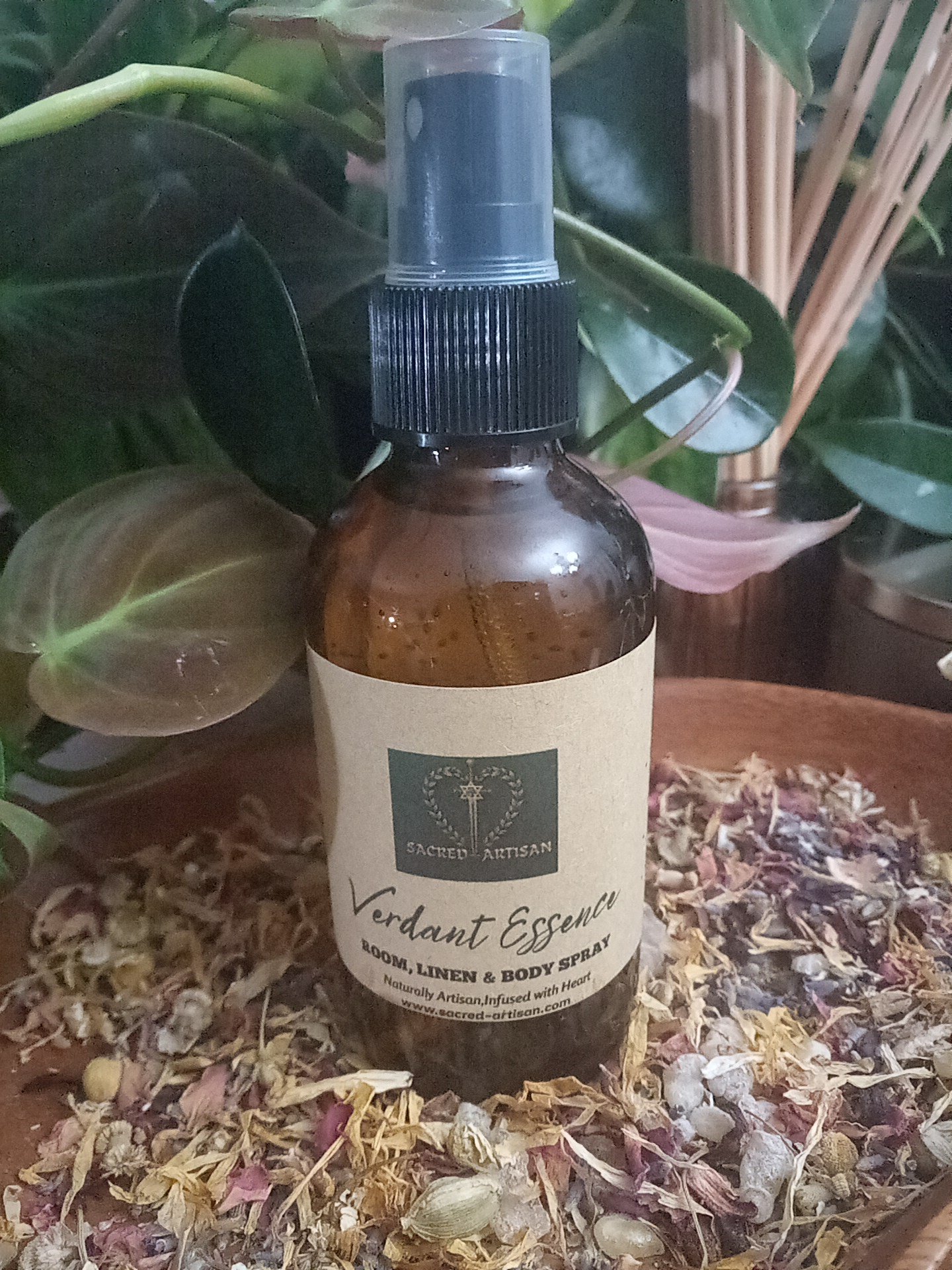 Experience the tranquility of nature with VERDANT ESSENCE, a natural spray designed to invigorate your environment. Infused with a harmonious blend of essential oils—pine, cypress, basil, rosemary, eucalyptus, moss, cedarwood, and juniper berry—each spritz transports you to a serene green pasture, filling your space with a refreshing and grounding aroma. Perfect for use as a room, linen, or body spray, this versatile 120ml/4oz amber bottle elevates your ambiance and enhances your relaxation.
